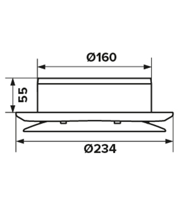 Размеры: наружный диаметр 234 мм, диаметр присоединяемого воздуховода 160 мм.