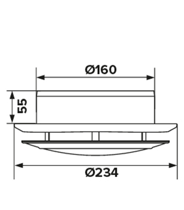 Размеры: наружный диаметр 234 мм, диаметр присоединяемого воздуховода 160 мм.