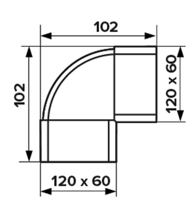 Колено вертикальное пластиковое для плоских воздуховодов 60х120 мм 90°