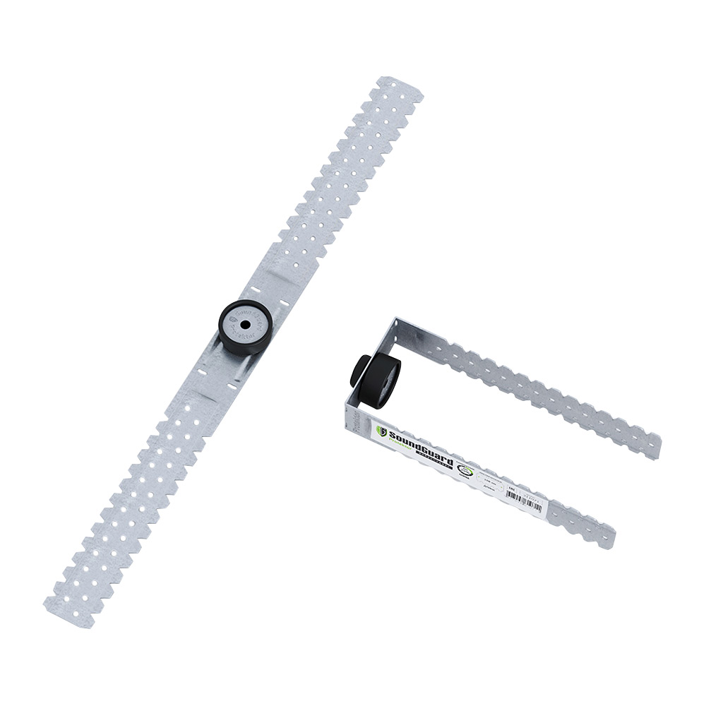 Представляет собой металллический П-образный профиль с упругим элементом из резины, который исключает контакт основания и крепежного элемента с несущим профилем. С его помощью обеспечивается снижение передачи структурного шума от перекрытия на каркас подвесного потолка и/или стен.