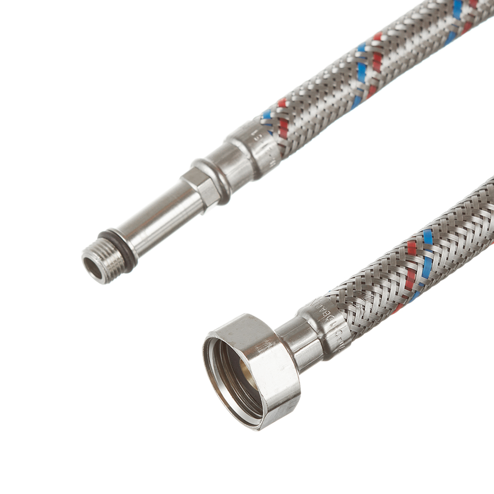 Состав: Резиновый шланг (EPDM) в оплетке из нержавеющей стали AISI 304, гайки, ниппель и штуцер - латунь.