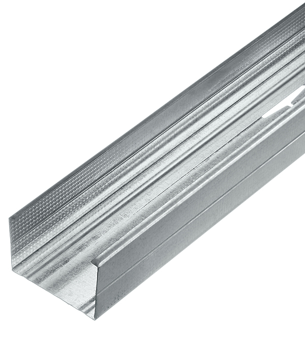Предназначен для использования в качестве вертикального элемента каркасов, предназначенных для перегородок и обшивок стен. Монтируется с профилем направляющим 75х40.